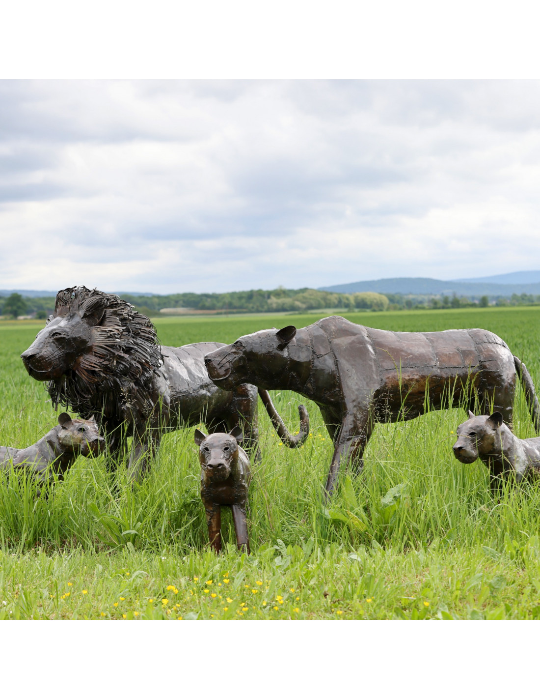 Sculpture grandeur nature d’une Lionne, réalisée en métal recyclé, parfaite pour apporter une touche originale et singulière à votre espace décoration jardin. Cette pièce unique fait partie des collections des Oizeaux de Passage. Entièrement façonnée à la main, elle est issue du savoir-faire artisanal du Zimbabwe.